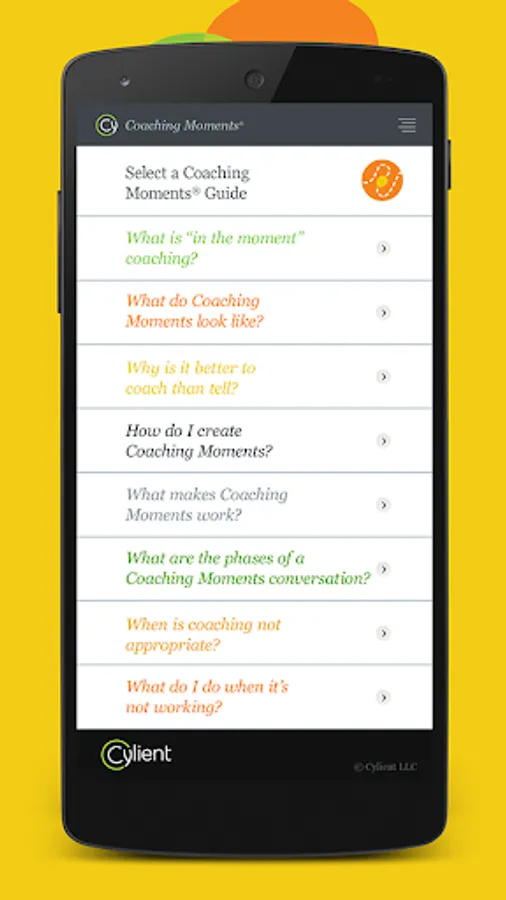 Developed from Cylient’s groundbreaking workshop “Coaching In The Moment®,” this Coaching Moments (R) app will help you turn day-to-day conversations into opportunities to help people learn and grow. You create Coaching Moments by igniting insights, rather than just telling people what to do. When people connect the dots for themselves they’re motivated to take action. That’s the alchemy of Coaching Moments – turning insights into meaningful actions.