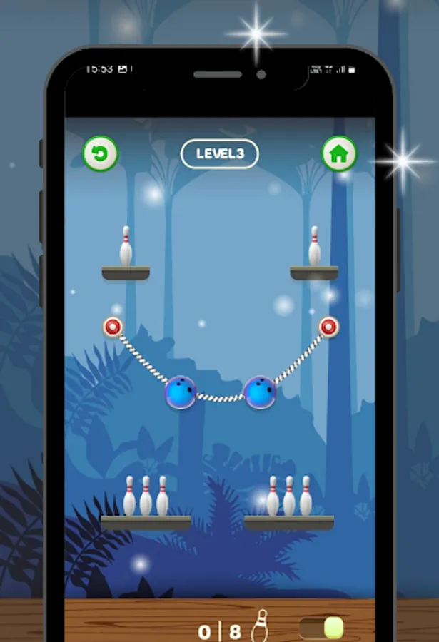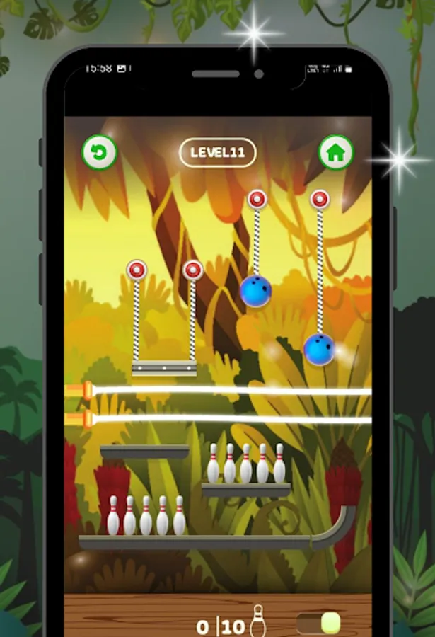 Cut the rope bowling game is a physics types of game by cutting the ropes and set the gravity to make the ball floating and smash the pins.
