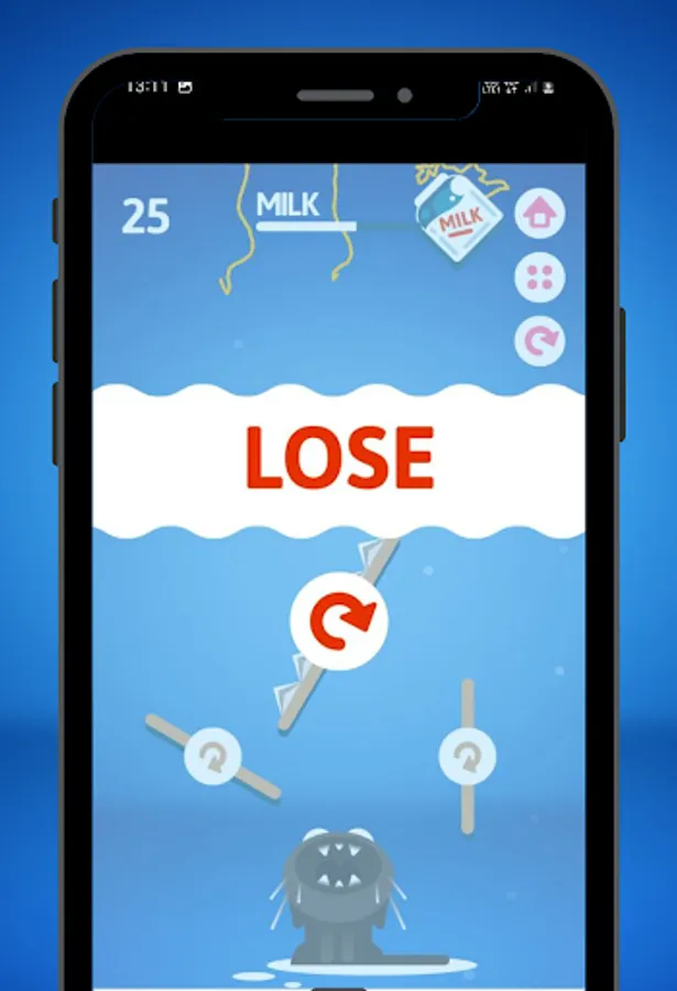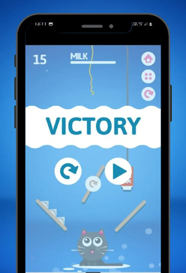 To win the Feed the Kitty Cat game, you need to make sure the cat gets enough milks that hangs on the ropes, boxes and from milk bars. You will lose the game if the kitty cats doesn't get enough milks.