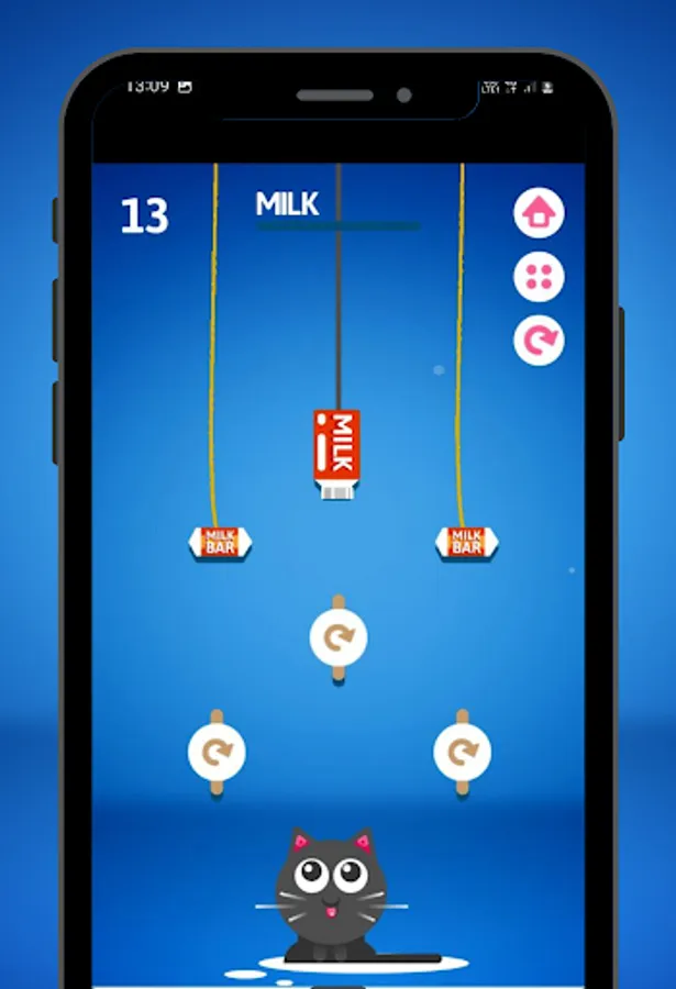 Follow the adventure of the Kitty the Cat by feeding the little kitten milk that hangs on the ropes, boxes and from milk bars.