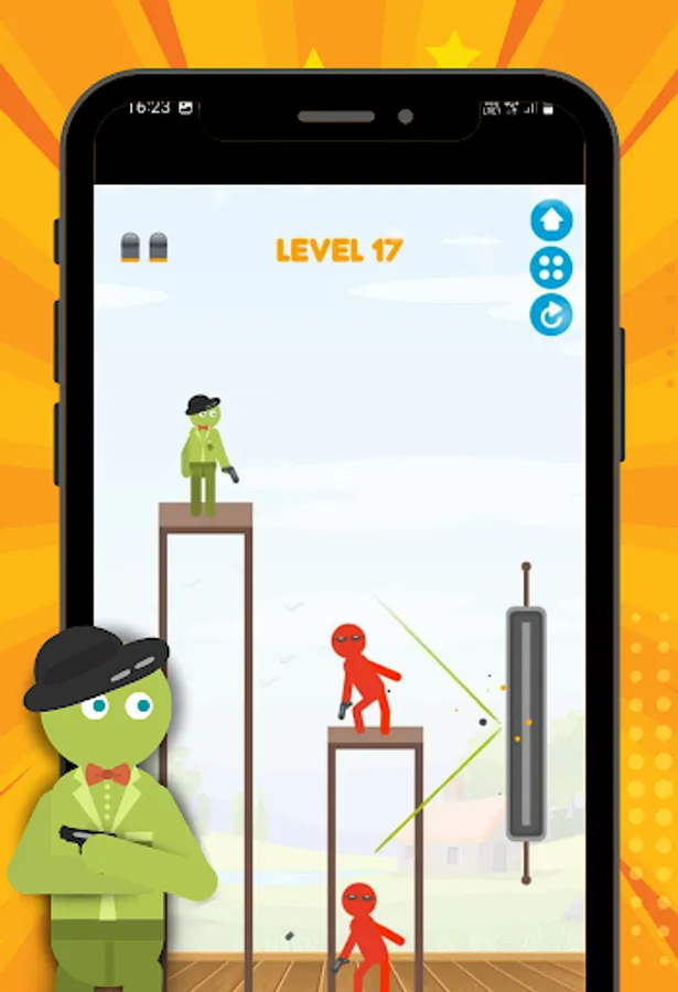 if you are a big fan of arcade shooting and physics game, this might be the next stickman ragdoll shooter for you. It has simple interface but funny looking ragdoll hero. Exercise your brain and your fingers, aim and shoot the enemies (red ragdolls) to win challenges.