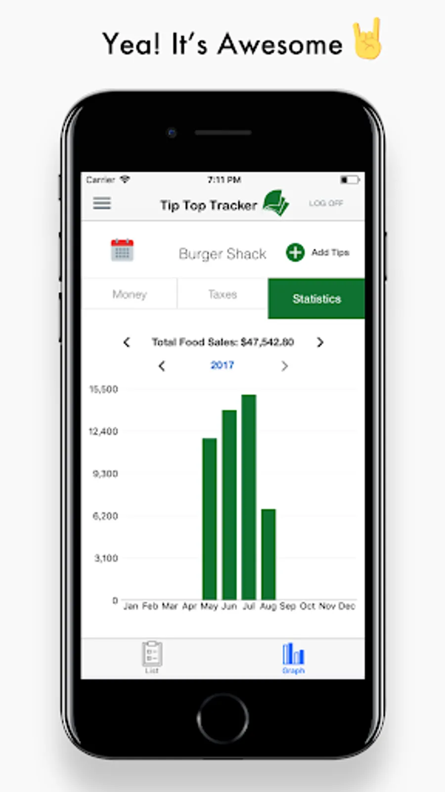 We will keep you updated with full reports of your tips and taxes. And you can also view all your data in a graphic chart.