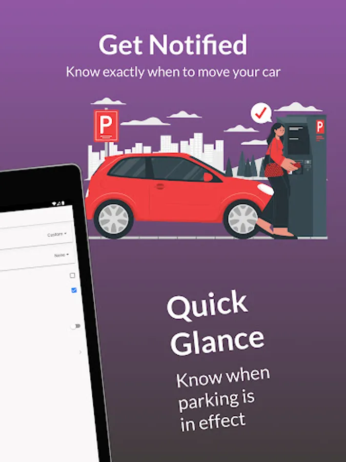 • Hassle-free app layout featuring smooth street parking status controls