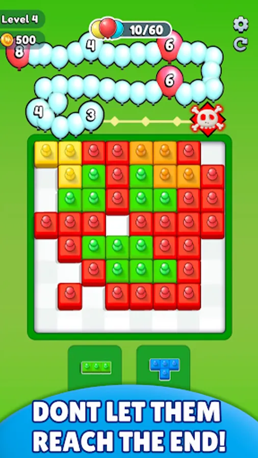 Pop Balloons: Each move brings balloons closer to the end zone! pop them before that.