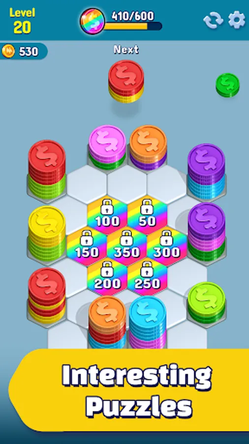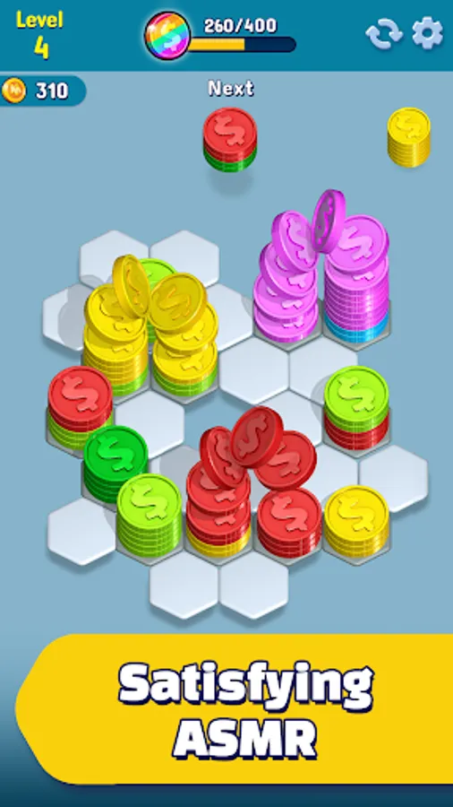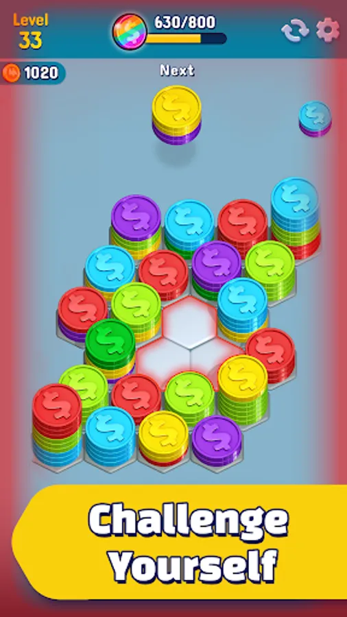 Gameplay so Smooth, You’ll Get Hooked: With a single tap, dive into a sea of colors and start sorting those vibrant coins! Easy to pick up but challenging to master, HexaCoin Harmony is perfect for quick breaks or longer sessions.