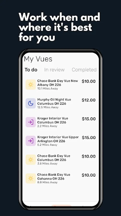 2) Turn on push notifications within the app and automatically receive notification when projects nearby you become available. Use the app to see how much the project pays, how many photos are required, and the deadline for submission.