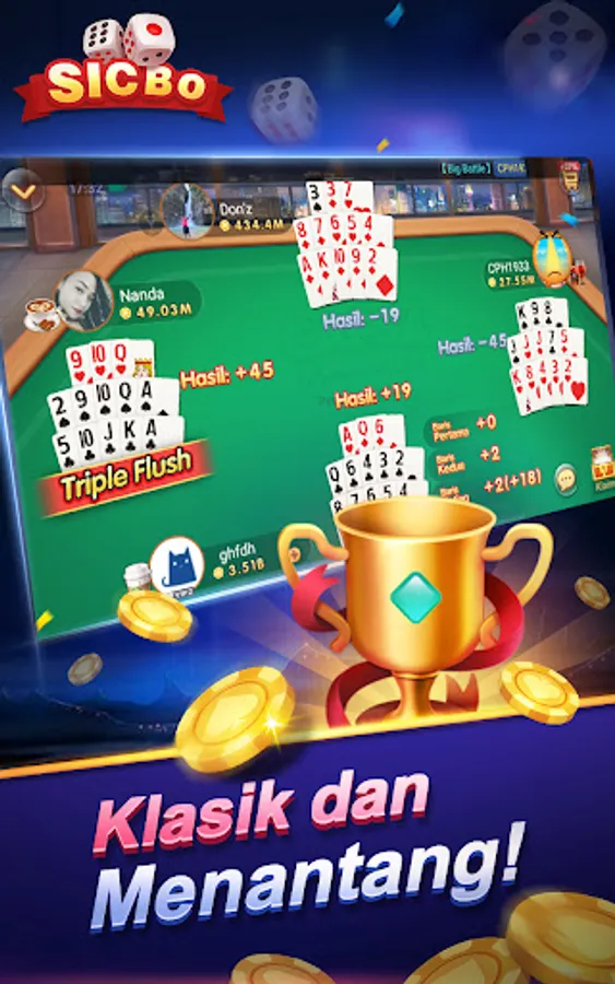 5. We have various game options for you to choose from: Sic Bo, Fish, Shrimp, Crab, Domino, Texas, Ceme, Baccarat, Domino Bandar, Texas Bandar, Dragon Tiger Fight, etc.