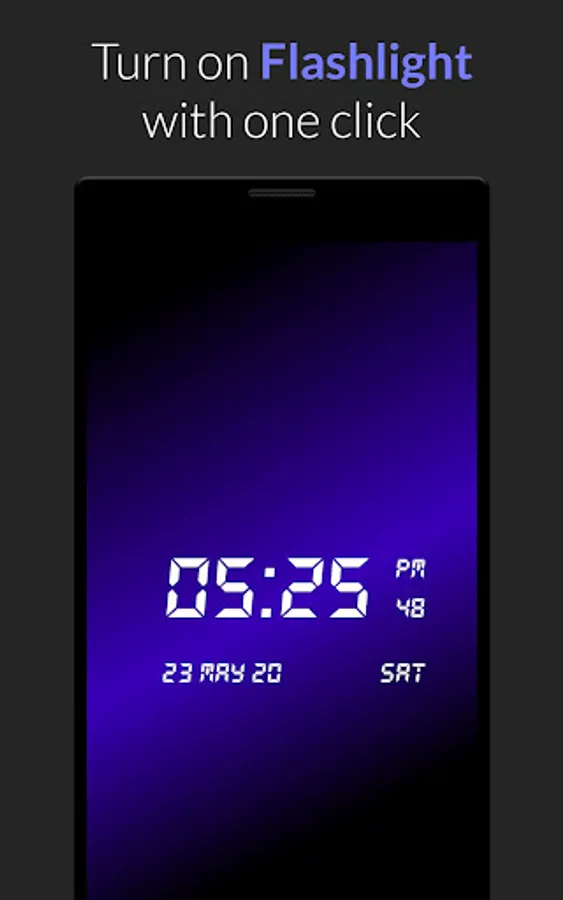 This app can be used as a night clock. Just open the app and keep it near your bedside. It won't turn off for entire night.Β With just a click of a button, it will turn on the flash light in dark.