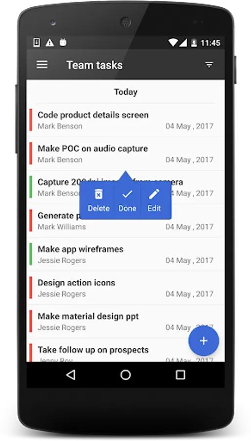 - Edit, Complete and delete team tasks.