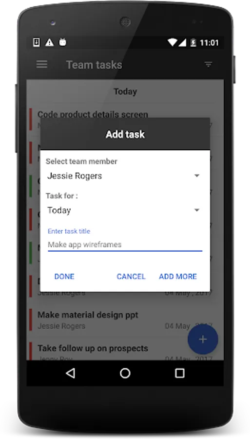 - Add tasks for your team members each day.