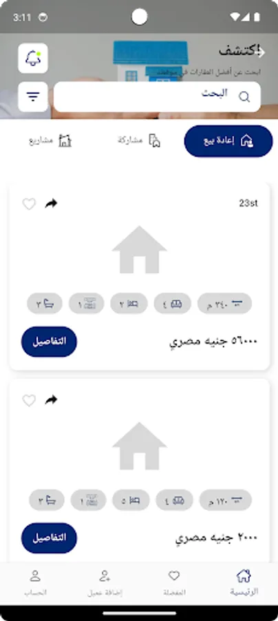 يسمح لك تطبيق في خدمتك بتحديد معايير البحث الخاصة للعثور على العقار الأنسب لاحتياجاتك.