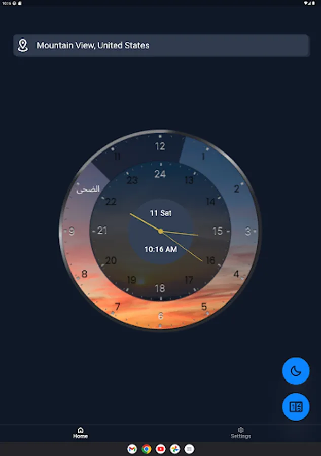 TawQeet is an Arabian clock where you can know the time now in any location but the hours are with Arabian names to make users know the names of hours for Arab. Also it contains moon calendar and tasbih features and users can choose any location to know its time from maps.