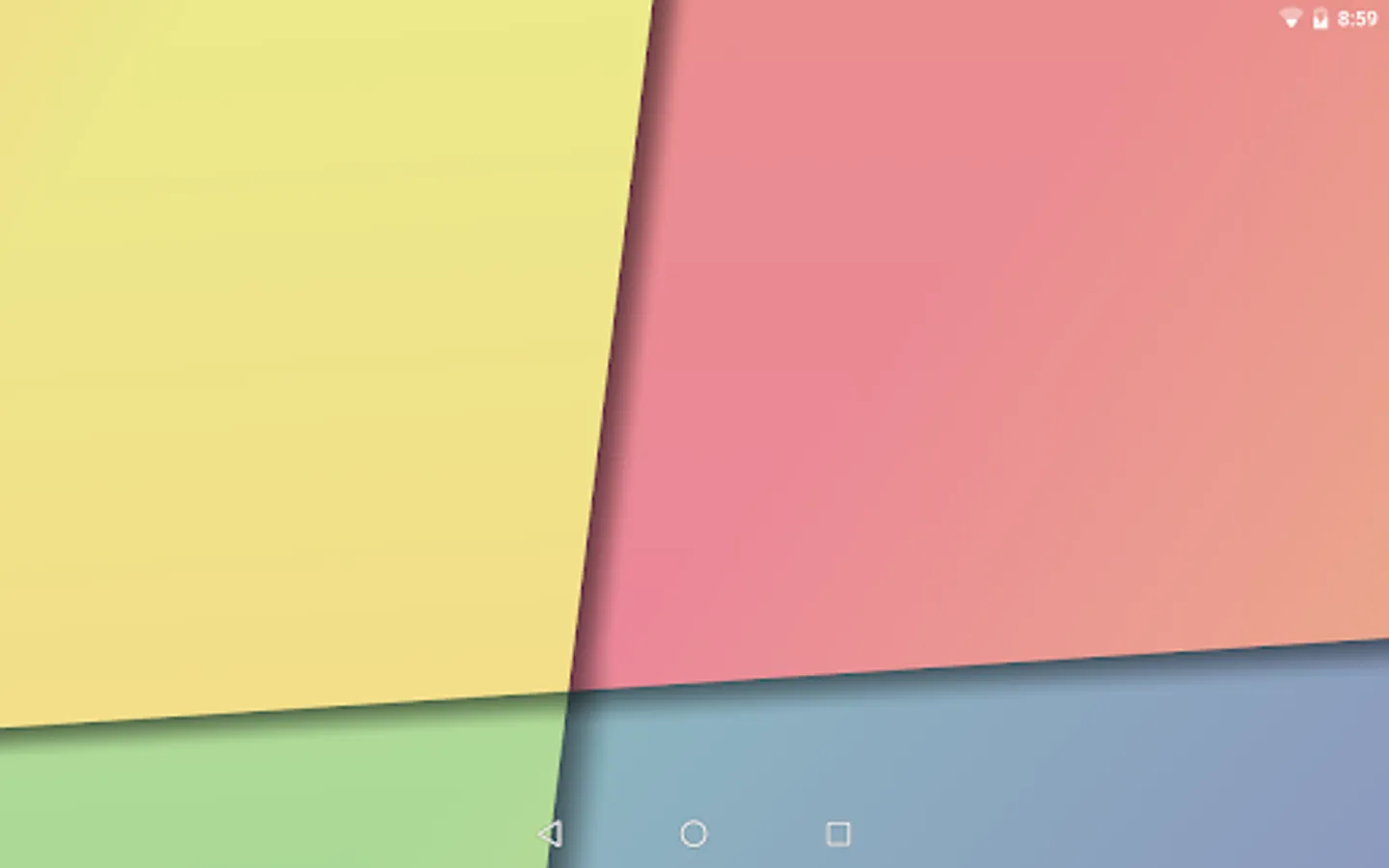 This live wallpaper and screen saver shows subtly moving angles and react to touch. The colors are customizable and can be based on the battery level. Optionally, the quadrants emit glowing particles when touched.