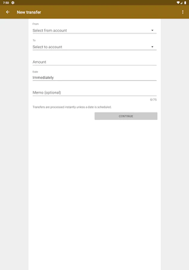Cypress Bank’s Mobile Banking app enables you to transfer funds between your Cypress Bank accounts right from your Android powered phone.