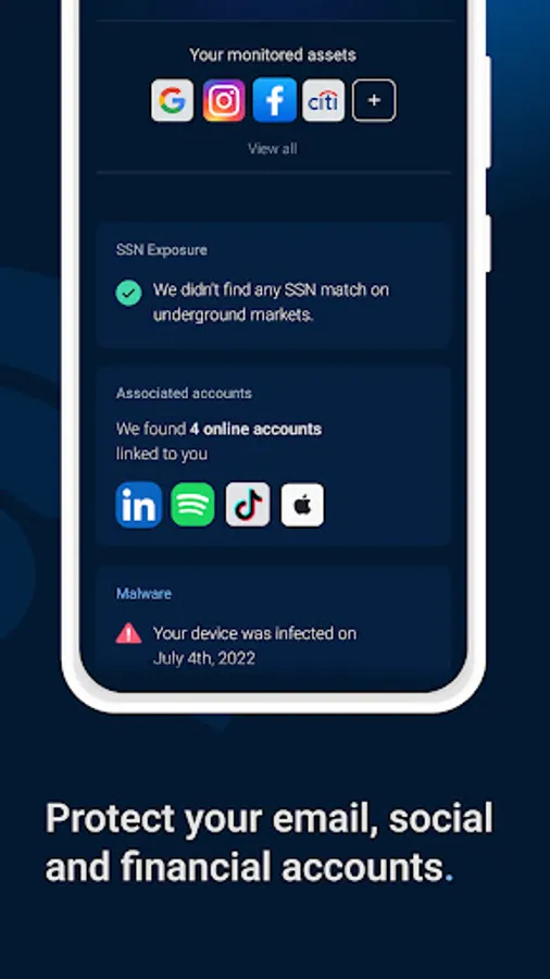 > Dark web monitoring for your breached passwords and personal information, keeping you informed if your information is compromised.