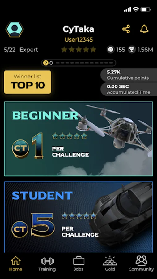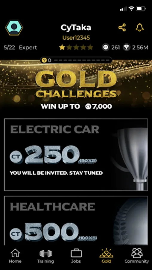 All new guests start at the Beginner level to prove their skills. The Beginner level offers easy challenges with up to 1 CT Coin (CytakaApp Coin) prize per challenge. Each completed challenge earns you a Star and points. Once you complete five challenges with 100% accuracy within the allocated time frame and win a total of 5 stars, you can unlock the next level.