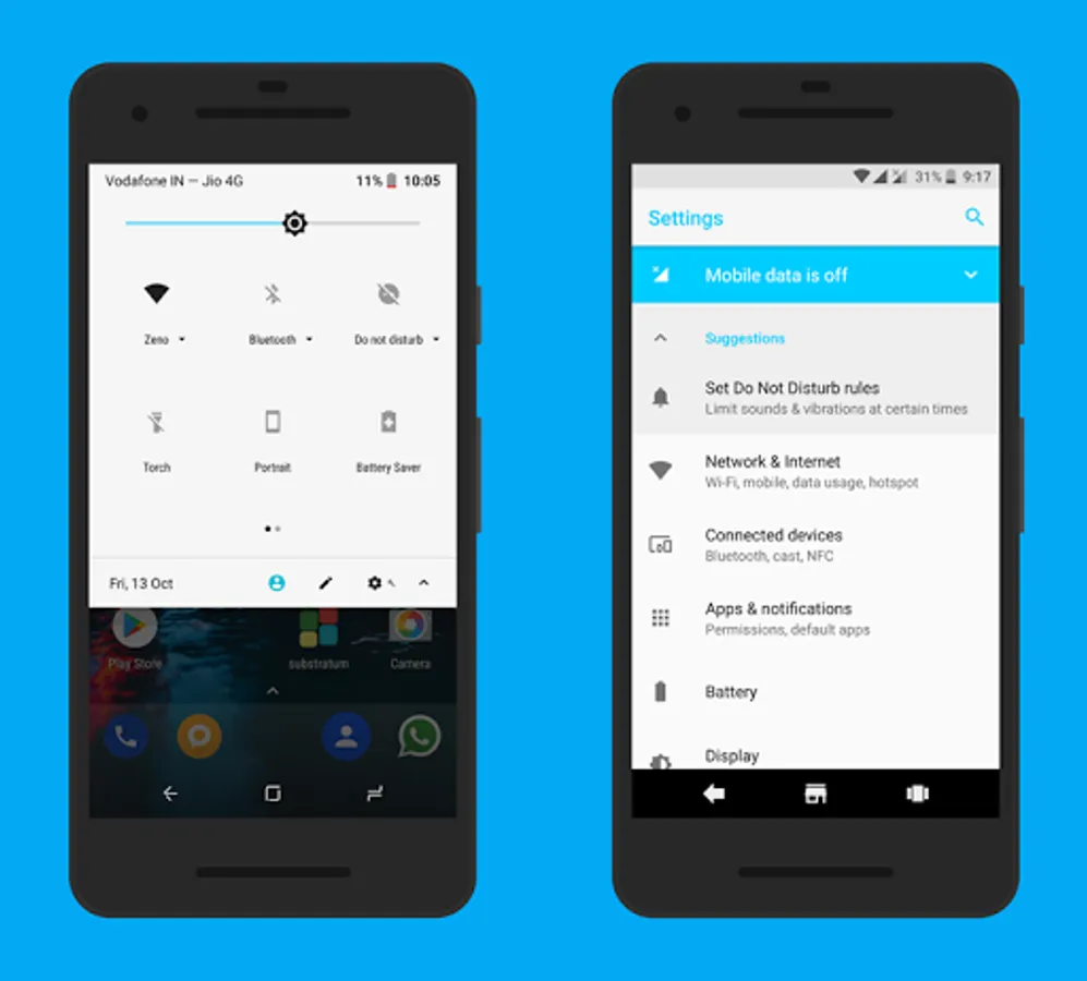 Please Note: Screenshots are of 8.0, in 7.0 the settings and notification panel may be Dark