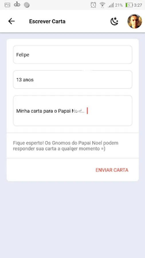 If you want to make a special request to Santa, simply write your message and send it to Gnomes around the world directly by the app. But remember that the Gnomes are very busy, and sometimes they sleep all day. So do not be sad if your answer takes a while.
