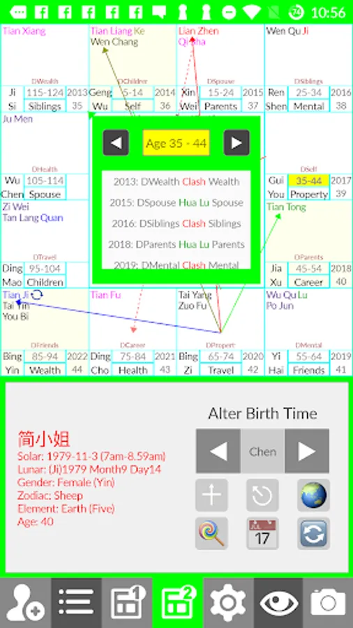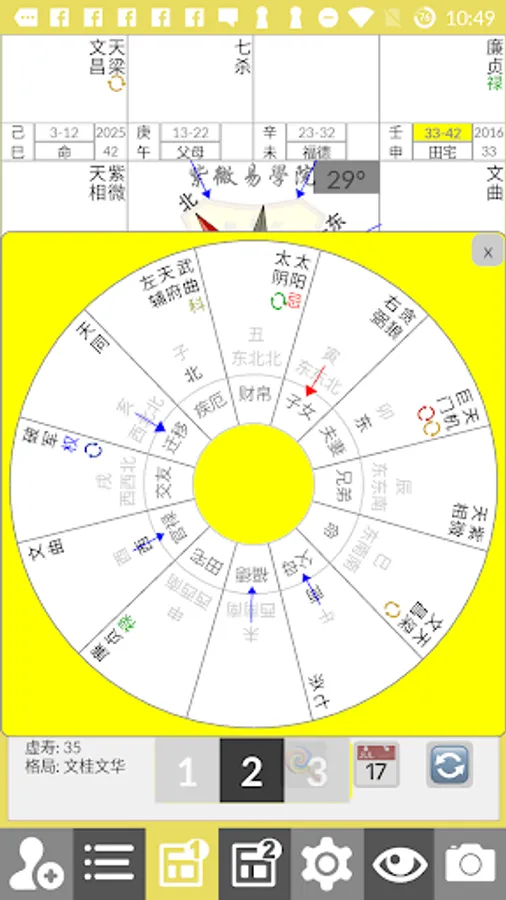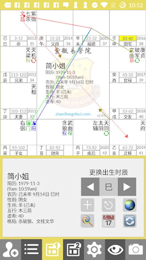 This ziweidoushu charting app comes with ten major functions including dual chart system, four enhancer lines, dual language instant change, birth time instant change, fengshui compasses, etc .