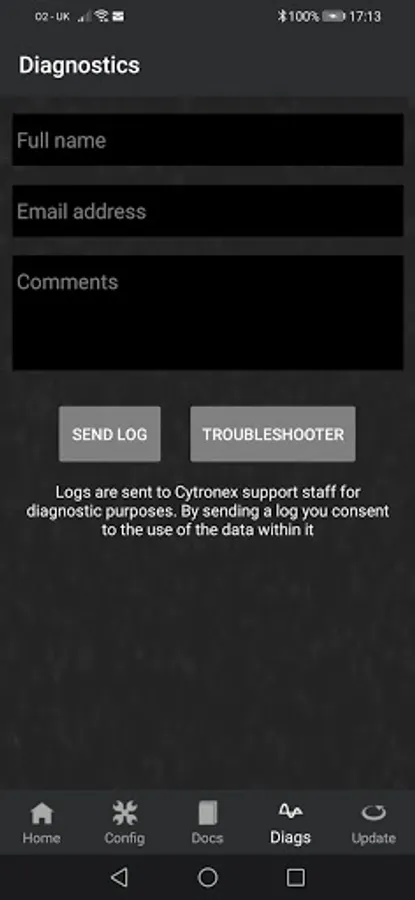 - Send logs containing diagnostic information to the Cytronex support team