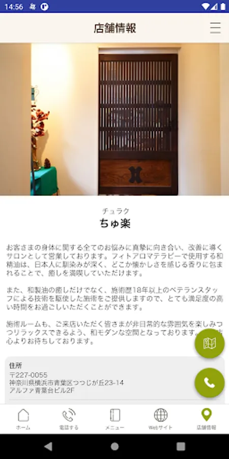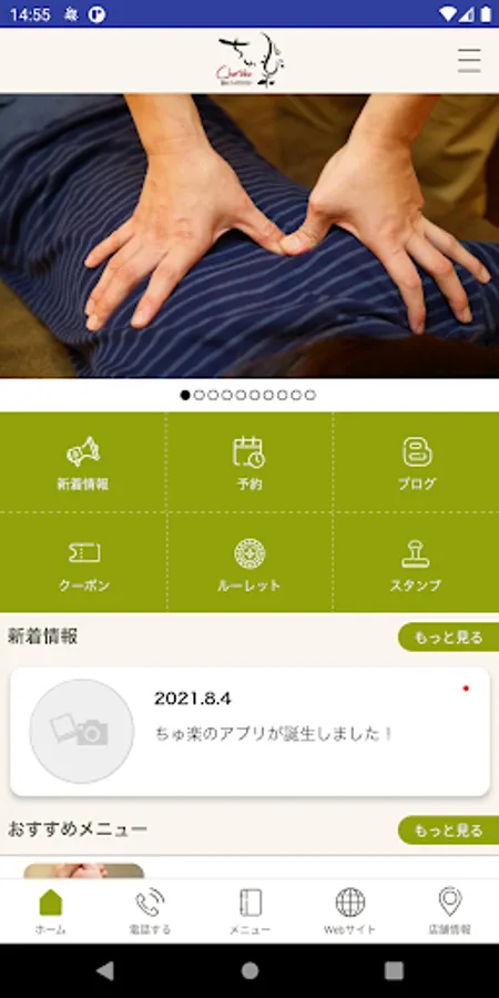 Manipulative & Phyto Aromatherapy Churaku official app is now available. You can receive new information and deals of "Churaku" in real time through the app. You can also check and make reservations for menus and desired time zones from your smartphone at any time. By installing the app, you can use "Churaku" more conveniently and easily.