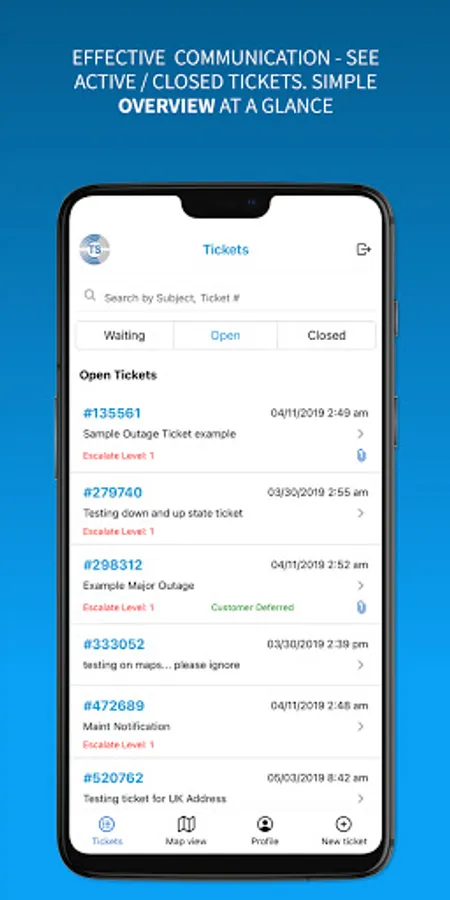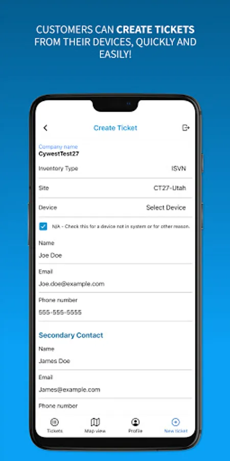 The Cywest TicketSys application is designed to give our customers the ability to create, edit and review tickets from their mobile devices. The app provides a convenient communications method between Cywest clients and staff from any location.