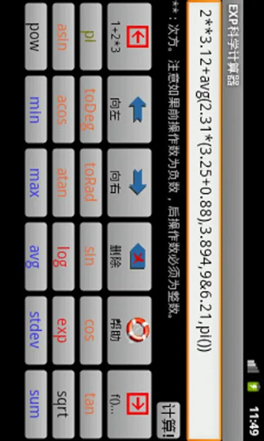 Scientific Calculator Exp is a powerful scientific expression calculator to evaluate complicated mathematical expressions. 科学计算器EXP提供简体正体中文界面和帮助,完全支持简体正体中文。EXP科学计算器支持所有的安卓手机和平板电脑,支持从1.5到4.0的安卓系统。