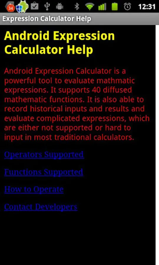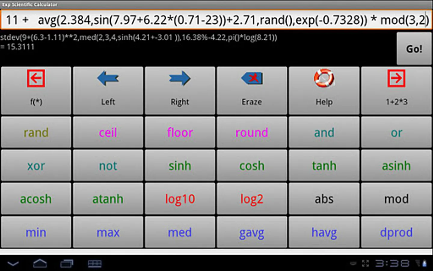 This calculator supports 40 diffused mathematical functions. It is also able to record historical inputs and results and evaluate complicated expressions, which are either not supported or hard to input in most traditional calculators. This calculator fully supports all the android phones and tablets from Android 1.5 to Android 4.0.