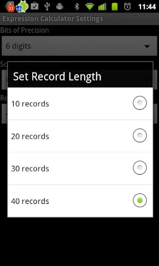 3. Record length. The record length gives out the number of historical calculations recorded by Exp Scientific Calculator.