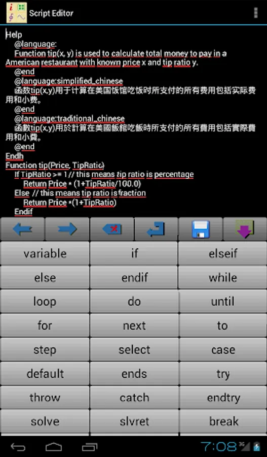 A detailed HTML based manual has been included in the app. User may also visit https://woshiwpa.github.io/MFPLang/en/MFPIndex.html to obtain a full manual of MFP programming language.