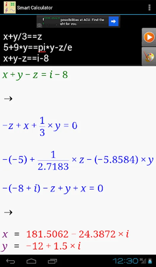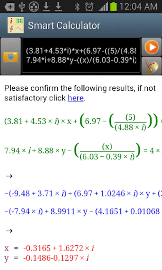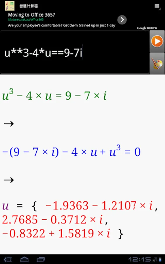 3. Calculation: Scientific Calculator Plus supports complex number, matrix, integration and is able to solve multi-variable linear equations, polynomials (up to 6 order) and other simple functions.