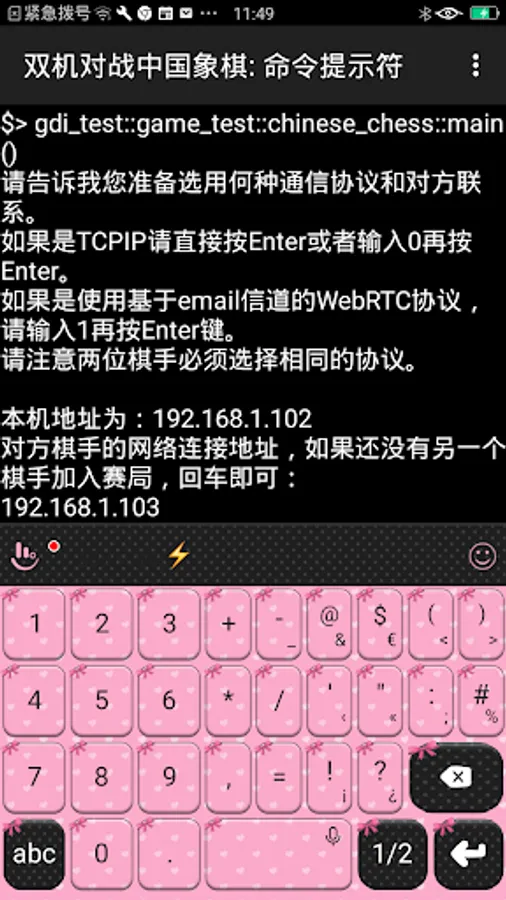 After the user's webRTC address is successfully set, there is no need to change it. Two players who are far away can play chess as if they are in the same room at any time. After the connection is successful, the video conversation will also start. Players can play chess while chatting. If you don't want to chat, you can turn off the video or voice. In short, this game is most suitable for leisure and entertainment with distant relatives and friends, and to kill time.