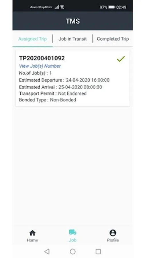 Transport Management System (TMS) mobile app that allowed particular truck driver to update job status according to the assigned trip when deliver goods from one location to another.