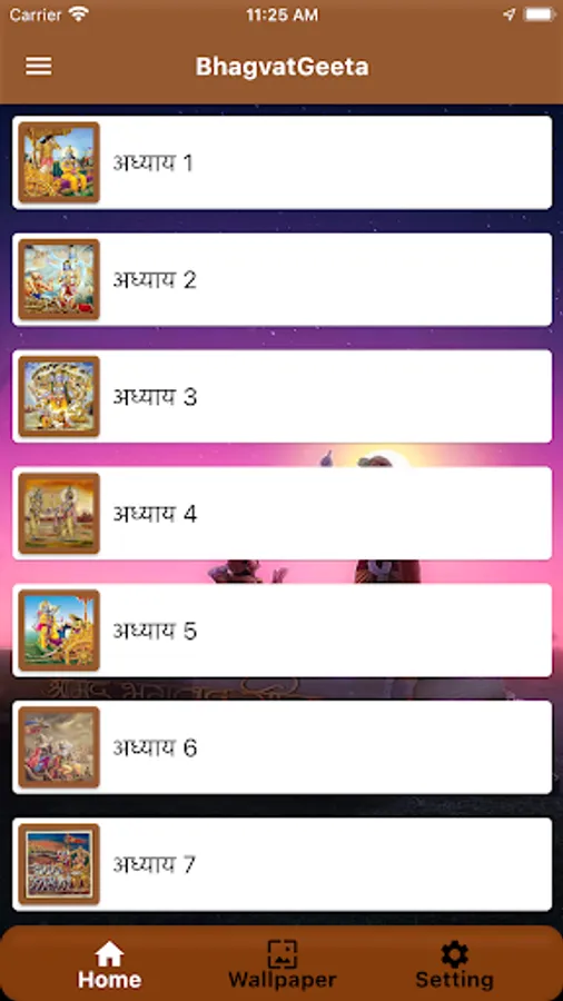Bhagavad Gita Wallpaper app has latest collection of high quality resolution images to use as mobile background. Bhagavad Gita HD Wallpaper Photos is to set home-screen & lock-screen display. Bhagavad Gita Book Wallpaper for mobile for devotes to worship and recite the shlokas. Bhakts can daily change the backgrounds with this New Bhagavad Gita Wallpaper application.