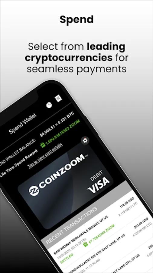 As the first crypto exchange in the US to issue its own Visa debit cards, CoinZoom customers can instantly convert any crypto holdings, like Bitcoin, to US Dollars and easily spend on everyday expenses across 192 countries and at over 53M merchants worldwide. Depending on the Visa debit card you’ve selected, you’ll earn up to 5% rewards back on every single purchase.