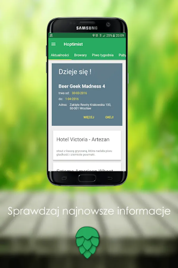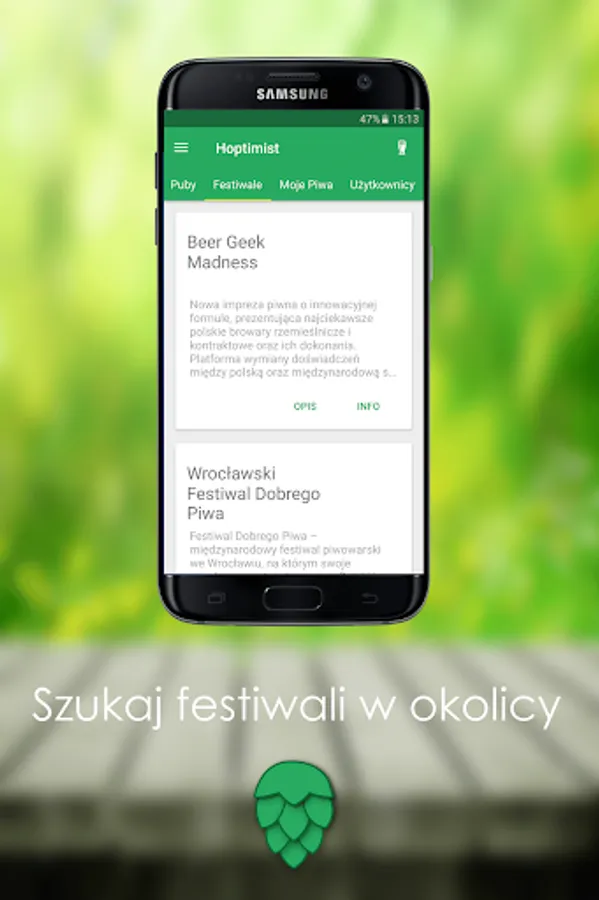 Hoptimist application is a collection of the best pubs, the most interesting festivals, the latest finest beers and breweries in Poland. With this application much better and faster you are familiar with the Polish scene crafting and do not miss events in your area. If you want to know more and have fun with a beer to check out the app right now.