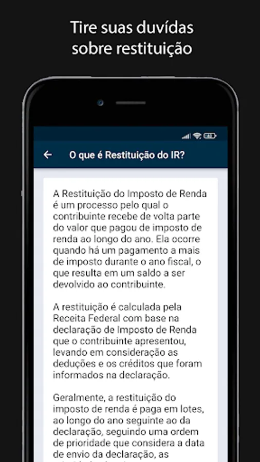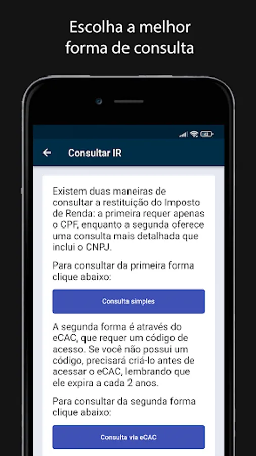 • This application has no direct link with the government, it only communicates and facilitates consultations of these services that can be publicly accessed by anyone through: https://www.restituicao.receita.fazenda.gov .br/.