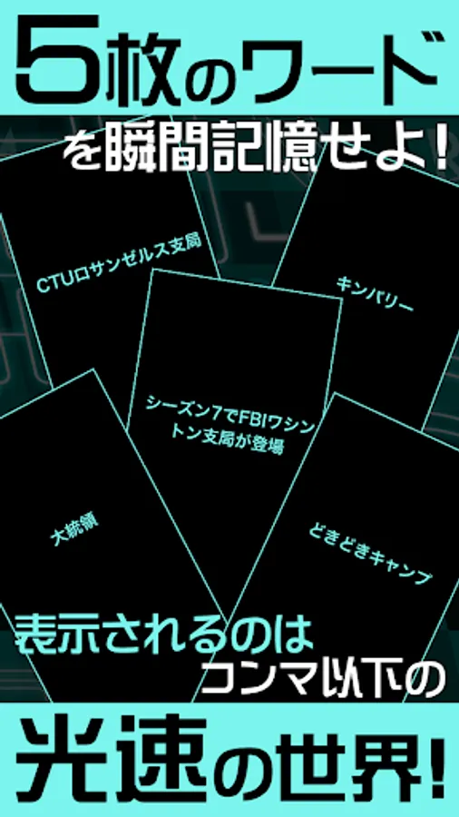 5枚のパネル(word)が光速で出ます。瞬間記憶してください。