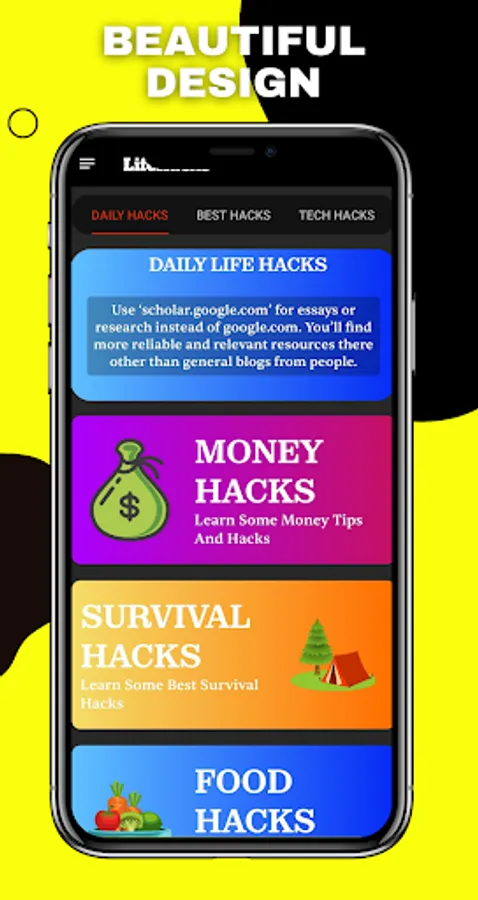 Discover a world of ingenious solutions and practical tips with Life Hacks, the ultimate app designed to make your daily routines easier and more enjoyable. This free and user-friendly application offers a wide array of life hacks across various categories, including home, technology, food, health, money-saving, and more. With this app, you'll gain valuable knowledge and tricks that will transform your life and bring you closer to a happier, stress-free existence.