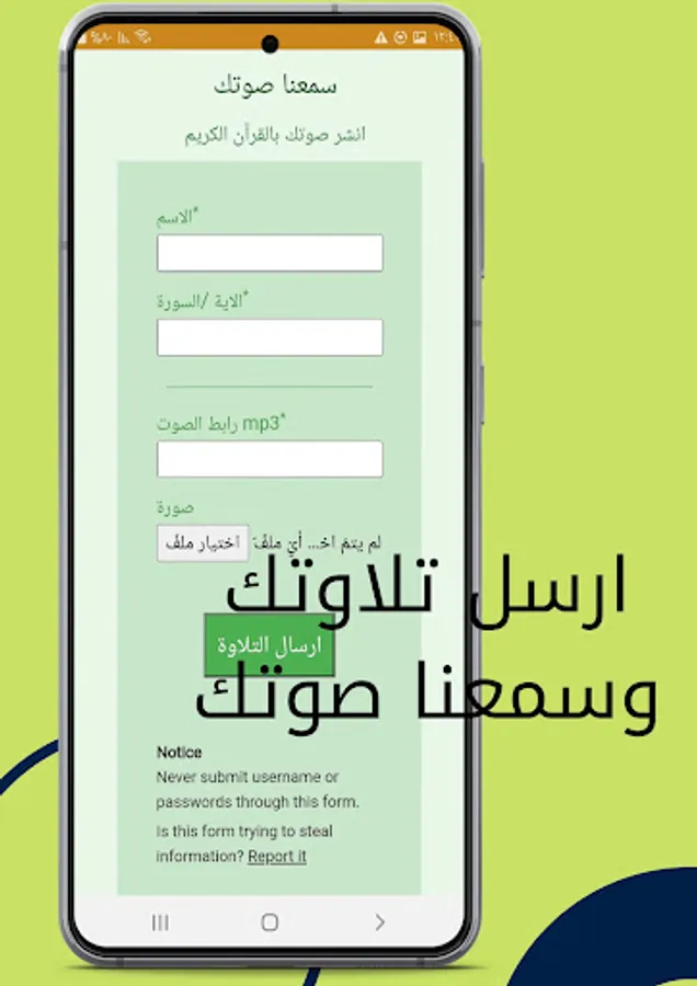 - You can record your recitation of the Qur’an and send its link to add it in the application