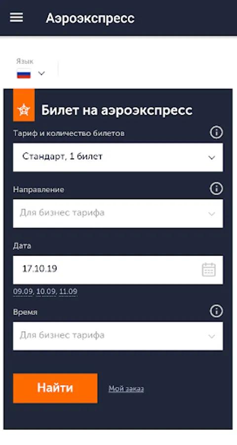 In our application you can quickly and without queues buy a ticket for Aeroexpresses connecting Moscow with Sheremetyevo, Domodedovo and Vnukovo airports.
