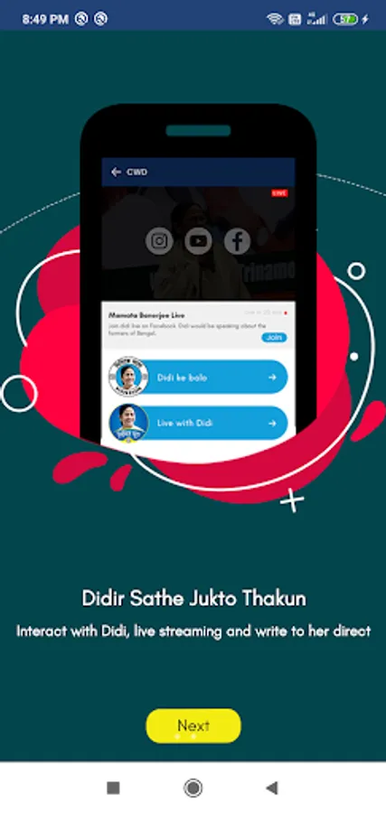 'Didi’r Doot’ is the first of its kind mobile application designed for the ‘People of West Bengal’ to directly connect them with Didi (Smt. Mamata Banerjee) and contribute to achieving her mission & vision for the state.