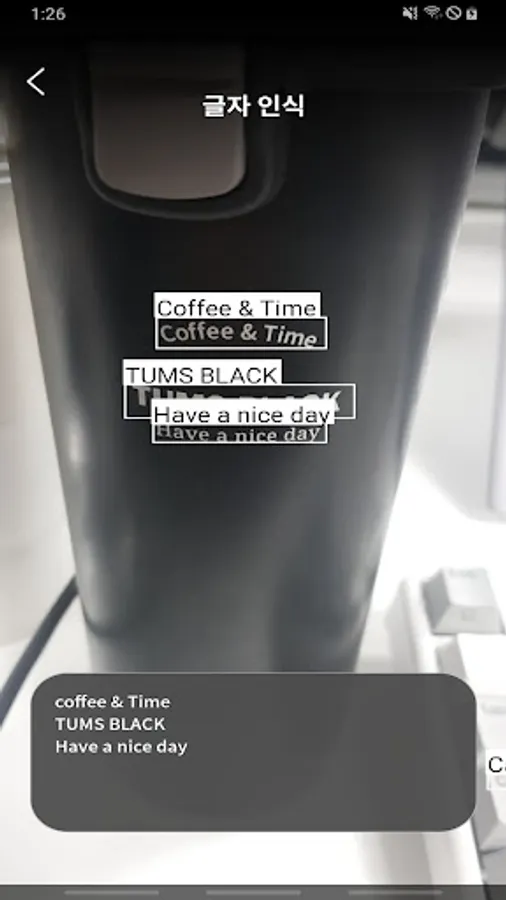A function to take a picture of Korean and English with a camera and announce it by voice