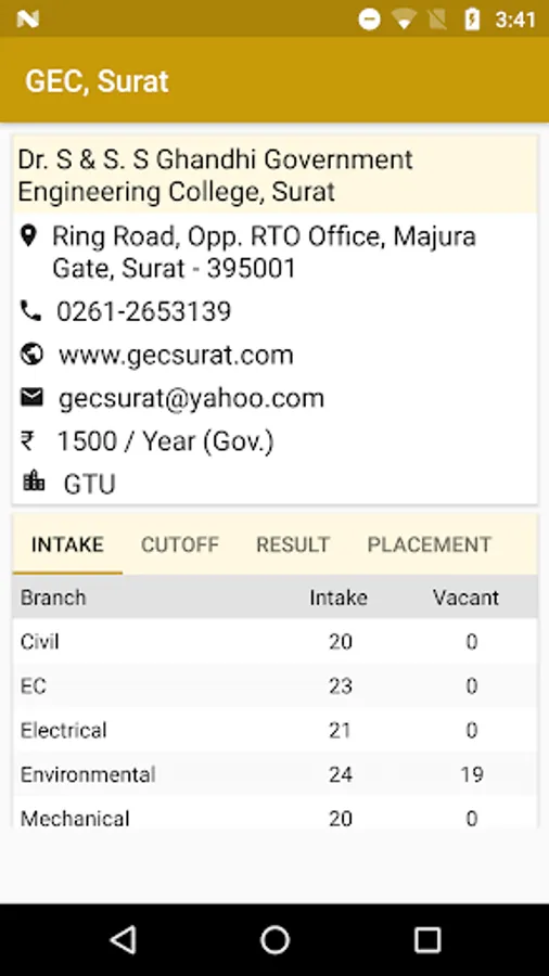 >> Complete College Details like Contact Detail, Fees, Seats, etc.