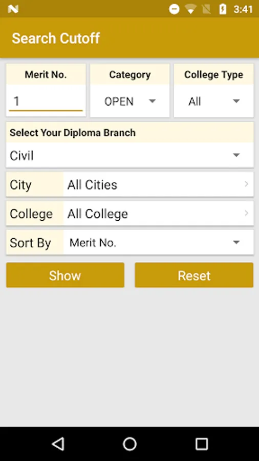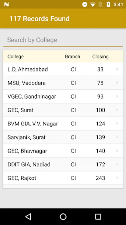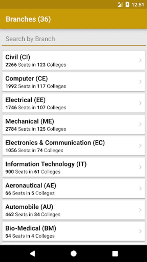 >> Search College & Branch based on Merit Number, Category, City, etc.
