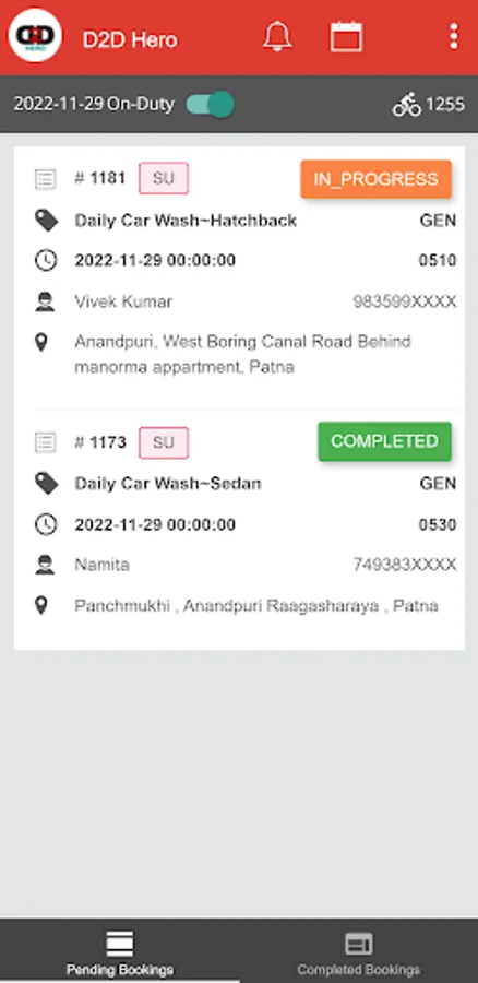 With D2D Hero app technician and service personal can Manage bookings for car wash, home cleaning , track customer booking details update booking status etc.