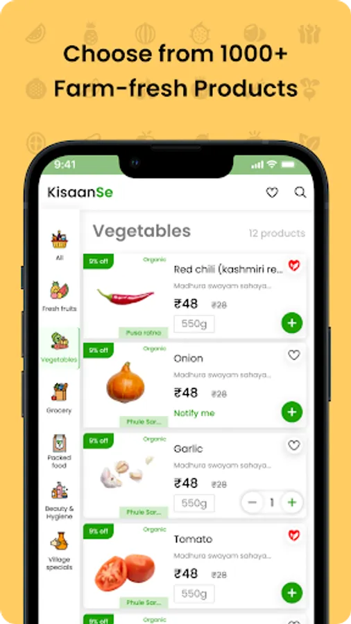 KisaanSe is a digital platform where you can get fresh farm-produced goods on your doorsteps which is directly dispatched by the farmers near and around you. Buy Directly, Live Healthy