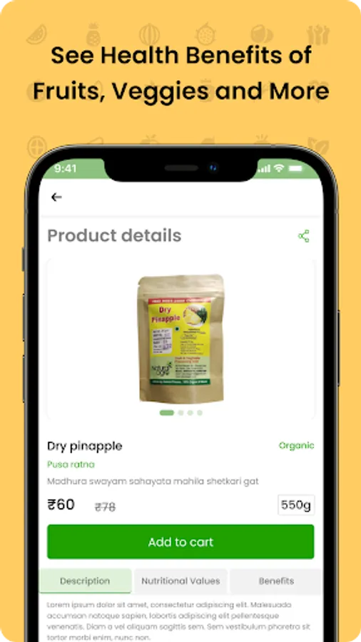 We have collaborated with SHG (Self-help groups), FPO(Farm producers organization), and NGO's (non-Governmental organization) to get the best quality products from all available farms which have good seasonal productions. They add products to our app through the order management system developed by us.