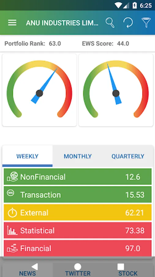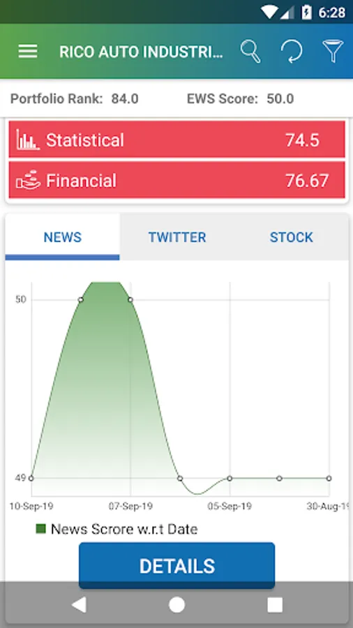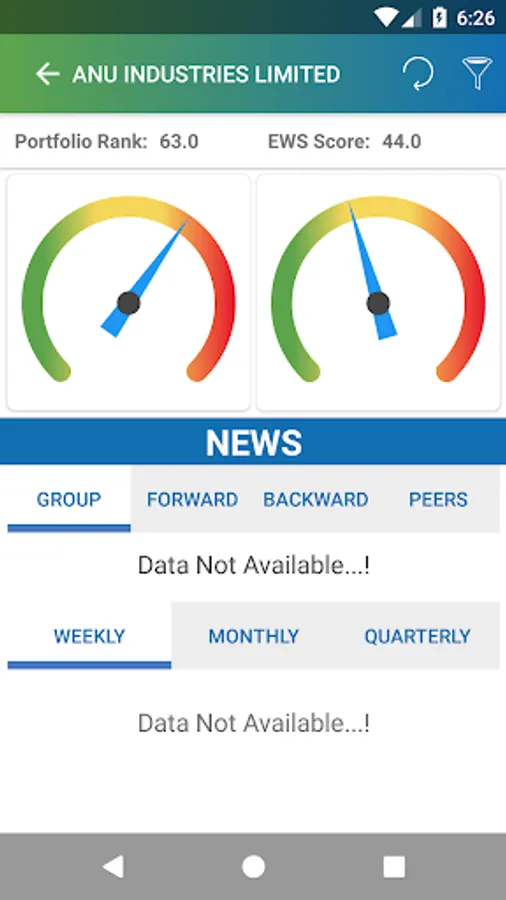 This App displays Portfolio Rank & EWS Score based on selection of various Companies depending on search,