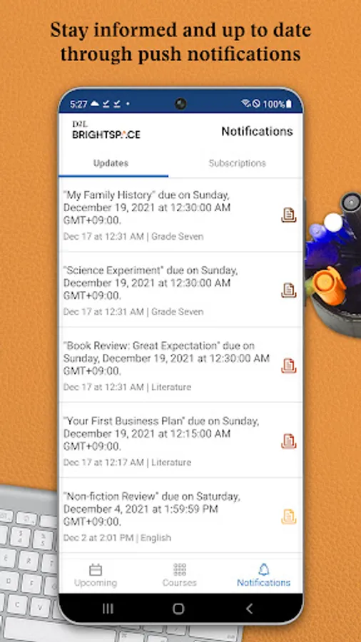 -Stay up to date about course-related updates such as Announcements, Activity Feed, Grades, Quizzes, and Assignments, all through push notifications